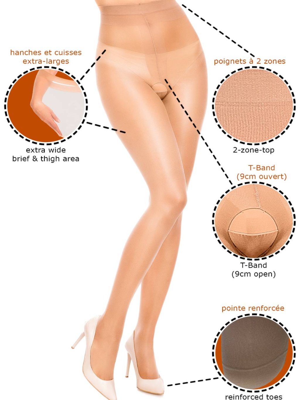Poloprůhledné punčochové kalhoty Ouvert 40 den jsou navrženy s důrazem na vysoký komfort a příjemný pocit při nošení. Jemný a hebký nylon v kombinaci s vyšším podílem elastanu (20 %) zajišťuje výbornou pružnost, měkkost a dokonalé přizpůsobení postavě po celý den. Otevřený klín zvyšuje pohodlí, podporuje hygienu a zároveň dodává modelu jemně smyslný nádech. Zesílená špice přispívá k vyšší odolnosti a prodlužuje celkovou životnost punčochových kalhot.